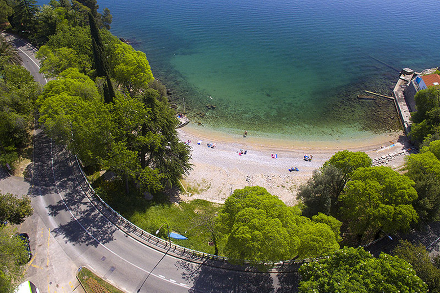 Milovníci slunečného počasí a koupální ocení křištálově čisté moře a mnoho malých zátok s plážemi v okolí. Nejznámější pláží je oblázková pláž Peharovo a dále také Medveja.