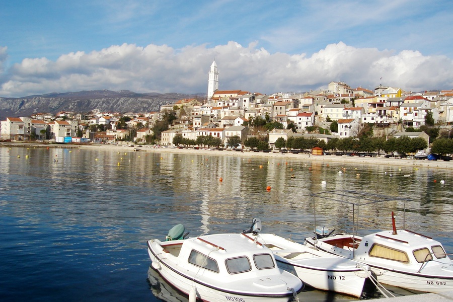 Letovisko pravděpodobně vzniklo v antických dobách, svůj význam posílilo ve 14. století. Historickou minulost připomíná opevněná věž, zbytky kláštera a staré jádro. Město prošlo boji s Turky, Benátčany, bylo postupně sídlem Frankopanů, později Uskoků. Ve měste se koná tradiční letní karneval s tisíci účinkujícími v maskách a krojích, vyvrcholením je starodávný tanec v krojích, se zpěvy. Letovisko je vyhledáváno pro pobřežní borové háje, překrásné pozvolné písečné i jemně oblázkové pláže, vhodné pro rodiny s dětmi.