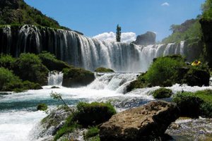 Kaskádová soustava na řece Krka, přístupný autem z pevniny i lodí od moře