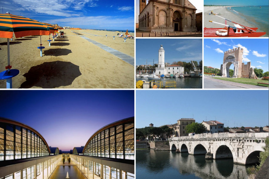 Rimini je významným historickým centrem celé oblasti Emilia Romagna. V centru najdete stavby z dob Římské říše i z časů renesance. Za zmínku stojí například Tiberiův most (Ponte di Tiberio ) - dominanta města, která přežila všechny války, jako vsup do města sloužila Augustova brána - oblouk z bílého mramoru, náměstí Tří mučedníků (Piazza Tre Martiri ), srdce starého města Piazza Cavour, dominanta nábřeží Grand Hotel a mnoho dalších klenotů. V Rimini můžete strávit krásné chvíle a Vaše letní dovolená přesto bude příjemným odpočinkem. Jsou tu nádherné pláže, čisté moře, nespočet možností zábavy, nočního života, sportu, ale i odpočinku. Mezi lákadla patří delfinárium, filmové festivaly a koncerty vážné hudby. Přímořská promenáda je dlouhá 15km, obklopena restauracemi, bary a nočními kluby. Můžete z ní obdivovat nejen krásné moře, ale i nemalý přístav. A bude-li Vám toto město malé, můžete podniknout zájezdy po okolí. Itálie a Jaderská riviéra nabízí kompletní „menu“ na nejvyšší úrovni a proto je tady letní dovolená tak lákavá.