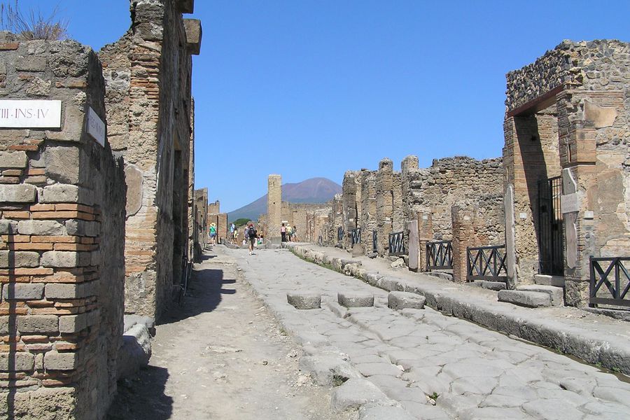 Kdysi bohaté a slavné římské město roku 79 n.l. zničil výbuch Vesuvu. Dnes sem přijíždějí návštěvníci z celého světa, aby si prohlédli zachovalé zbytky staveb, ulic, divadla…Nad městem se tyčí Vesuv, jediná činná sopka v Evropě. Její výška je 1.281 m.n.m. a leží přibližně 20 km od Neapole.