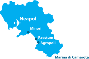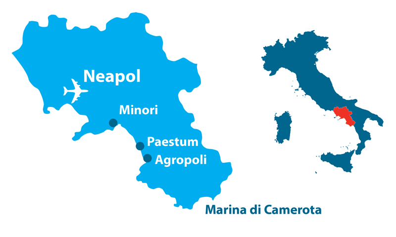 Kampánie, s hlavním městem Neapolí, je jednou z nejkrásnějších částí jihozápadní italské pevniny a zároveň turisticky významná a vyhledávaná oblast. Krásné a romantické přírodní scenérie podél Tyrhénského pobřeží jsou doplněny významnými historickými památkami ve městech Paestum, Agropoli, Marina di Camerota a Palinuro. Součástí Kampánie je Národní park Cilento, který je pozoruhodný členitým pobřežím se skalnatými útesy, zátokami a písečnými plážemi. Tato oblast s průzračným mořem se přímo nabízí ke strávení romantické a nezapomenutelné dovolené. Ideální klimatické podmínky vám umožní prožití příjemné dovolené od května až do října.