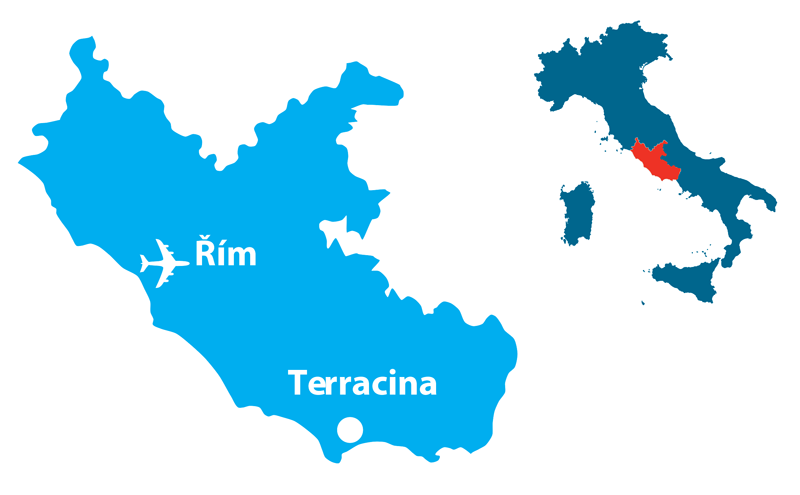 Terracina je známé přímořské letovisko, které se nachází na pobřeží Riviéra d´ Ulisse, kde jsou jedny z nejhezčích pláží oblasti Lazio, střední Itálie. Město se starobylým centrem leží mezi Římem a Neapolí a je tedy ideálním výchozím bodem pro zájezdy této části Itálie. Dříve to byl významný přístav, dnes je to velmi známá turistická oblast, ze které dýchá historie. Město Terracina je rozděleno na dvě části. Staré město "Centro Storico" v kopcích, kde dominantou je římský Jupiterův chrám "Tempio di Giove Anxur" tyčící se na útesu Monte Sant'Angelo vysokém 227 m, ze kterého je nádherný výhled na celé město, pláže a průzračné moře. Hlavní část chrámu je pryč, ale působivý klenutý základ chrámu je vidět na míle daleko. Historická část města je zasazena okolo centrálního náměstí fórum Emilian, kudy kráčí historie, můžete se toulat starobylými uličkami a obdivovat nejen nespočet památek, ale i výhled na moře. Nová moderní část města Terracina je na pobřeží, mezi dvěma kopci, tyčícími se útesy, kde najdete krásné, široké, písčité pláže, široké bulváry lemované stromy vedoucí k pláži západně od přístavu. Hlavním lákadlem je samozřejmě moře a jedinečná atmosféra Itálie. Letní dovolená v Terracina - nezapomenutelný zážitek.
