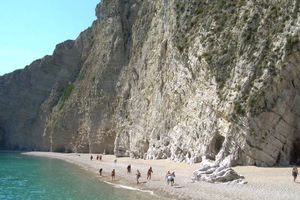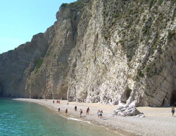 Nudisté si oblíbili pláž Mirtiotissa. Po skalní stěně na pláž stéká přírodní pramenitá voda, která návštěvníkům slouží jako sladkovodní sprcha.