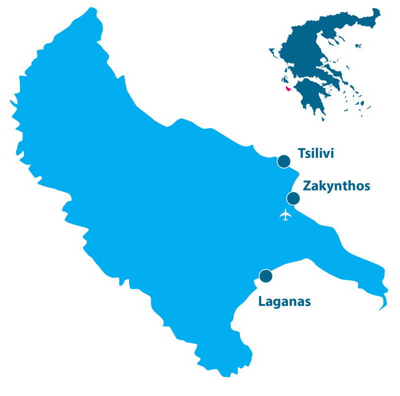 Ostrov Zakynthos je jedním z nejzelenějších a také nejslunnějších koutů Řecka. Zdejší léta jsou suchá a horká, zimy mírné s dostatkem srážek. Je to ostrov zaslíbený vínu, olivám, mandlím, citrusům a medu. Říká se, že si ho oblíbili bůh světla Apollón a bohyně lovu, krásná Artemis. Zatímco jižní a východní pobřeží ostrova tvoří nížiny a lemují půvabná letoviska, sever a západ ostrova patří překrásné přírodě, bujným skalám, jeskyním a okouzlujícím přírodním plážím s bílými oblázky, ke kterým se dostanete pouze z lodi. Střed ostrova protíná ze severu k jihu horské pásmo, zdvihající se do výšky přes 700 m (Vrachionas - 756 m). Pokud sem zamíříte mimo sezónu, máte jedinečnou možnost užít si krásy ostrova při pěší turistice. V takovém případě si ale nezapomeňte přibalit pevné boty.