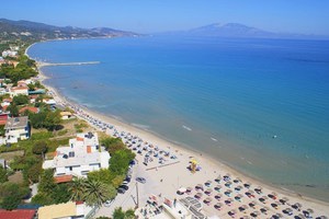 Nejznámější letovisko ostrova leží na jihovýchodě ostrova u 10 km dlouhé písčité pláži s pozvolným vstupem do moře. V létě na pláž mezi Laganas a Kalamaki připlouvají v noci želvy karety obecné klást vejce, na některých úsecích je tak zákaz vodních sportů, nočních procházek nebo zapichování slunečníků do písku. Samotný Laganas pak plnou měrou nabízí vše, co od rušného prázdninového střediska očekáváte.