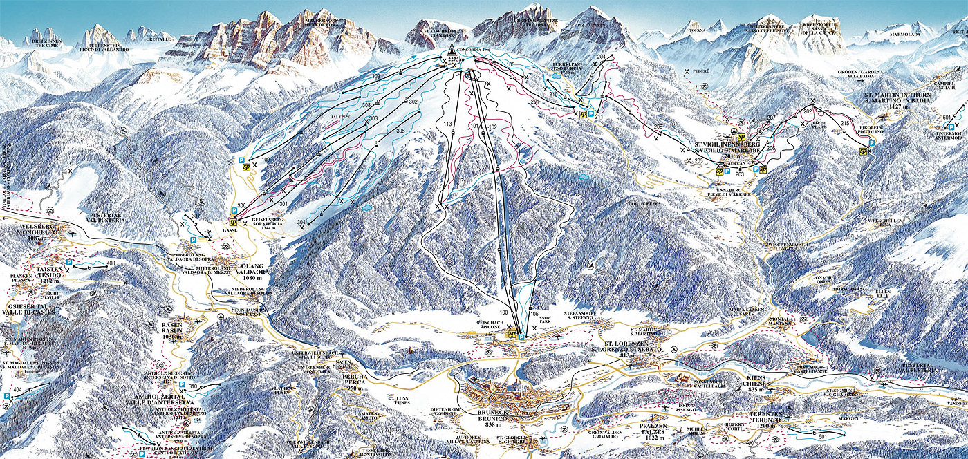 Bezdotykové čipové karty z výchozích středisek Valdaora, Riscone a San Vigilio di Marebbe zabezpečí pohodlný průchod k vlekům a lanovkám. V sezóně 2015/2016 je rozhodně z čeho vybírat: 2 kabinky pro 6 osob, 11 kabinek s kapacitou 8 osob, 3 kabinky pro 10 osob, 4 pro 12 osob a 1 dokonce pro 15 osob, 2 šestisedačkové vleky, tři čtyřsedačky a 5 vleků.