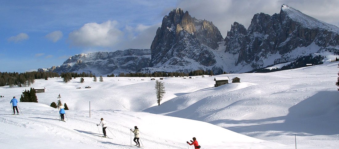 Nepřekonatelná je zdejší kulisa s masívy Schlern či Langkoffel, čnící nad náhorní planinou, která má rozlohu 8000 fotbalových hřišť. Tam i zpět ji protínají běžecké trasy o délce 80 km. Jsou rozdělené podle obtížnosti na modré, červené a černé. Na tyto tratě sem, kvůli nadmořské výšce, jezdí trénovat běžecké týmy z celé evropy.
